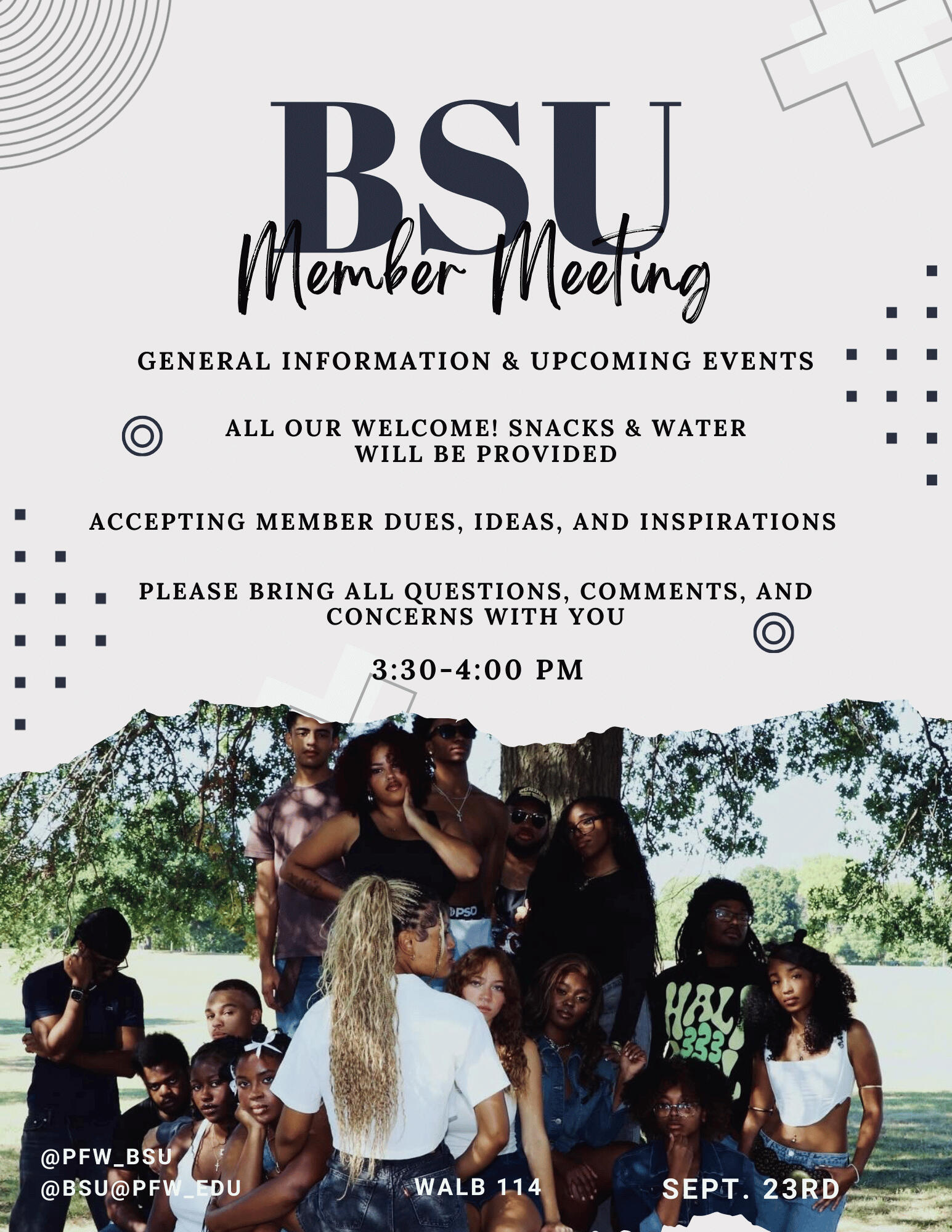 we are purdue fort wayne’s black student union (bsu). our organization is here to be an inclusive, cultural, on campus resource that caters to the needs of our fellow african-american students. soon the bsu will be officially changing our name to the black coalition (tbc). bsu believes tbc is a name that reflects our current group mission as well as our professional and education goals.